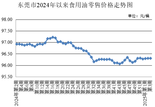 第3周,4种粮食农贸市场零售均价为每500克3.39元,与上周持平,其中,3种大米零售均价为每500克3.32元,与上周持平;面粉零售均价为每500克3.58元,较上周下降0.83%。5L桶装食用油农贸市场零售均价为每桶96.30元,与上周持平。