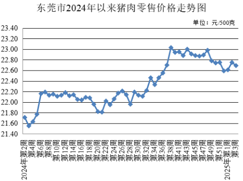 第3周,4种猪肉农贸市场零售均价为(每500克,下同)22.69元,较上周下降0.26%,其中,排骨、精瘦肉、有皮上肉、肋条肉(五花肉)零售均价分别为32.91元、22.48元、17.30元、18.07元,较上周分别下降0.48%、下降0.31%、持平、下降0.17%。