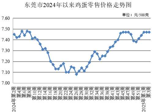 第3周,鸡蛋农贸市场零售均价为每500克7.47元,与上周持平。