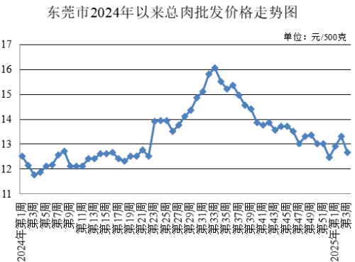 第3周,生猪出场价格为每公斤16元,较上周下降5.88%。总肉批发均价为每500克12.65元,较上周下降4.89%。