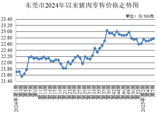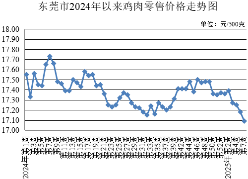 第7周,牛肉农贸市场零售均价为每500克46.68元,与上周持平。牛腩农贸市场零售均价为每500克43.14元,较上周上升0.21%。鸡肉农贸市场零售均价为每500克17.09元,较上周下降0.52%。