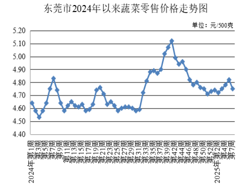 第7周,监测的30种蔬菜农贸市场零售均价为每500克4.75元,较上周下降1.45%。其中,13种叶菜类农贸市场零售均价为每500克4.83元,较上周下降1.63%;17种非叶菜类农贸市场零售均价为每500克4.68元,较上周下降1.47%。