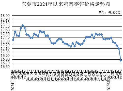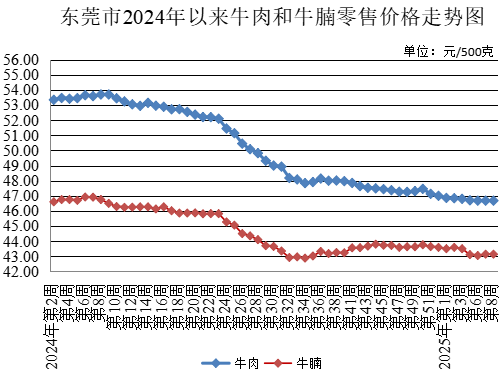 第8周,所监测的牛肉农贸市场零售均价为每500克46.68元,与上周持平。牛腩农贸市场零售均价为每500克43.14元,与上周持平。鸡肉农贸市场零售均价为每500克16.77元,较上周下降1.87%。